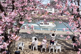 徳島市中央公園助任川沿いで、3月11日及び12日に4年振りに花見会を実施しました。