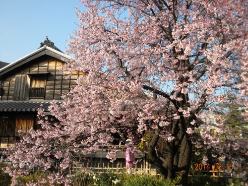 原田家の庭 樹齢250年の蜂須賀桜の母樹をご自由にご覧ください。呈茶はありません。