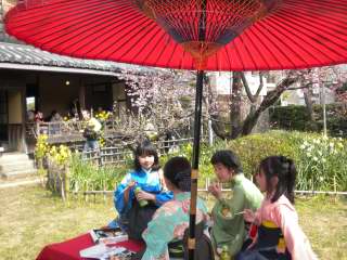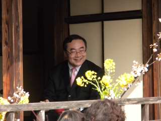 現代の徳島藩主(飯泉知事)も武家屋敷にて蜂須賀桜をご観賞(右の写真)