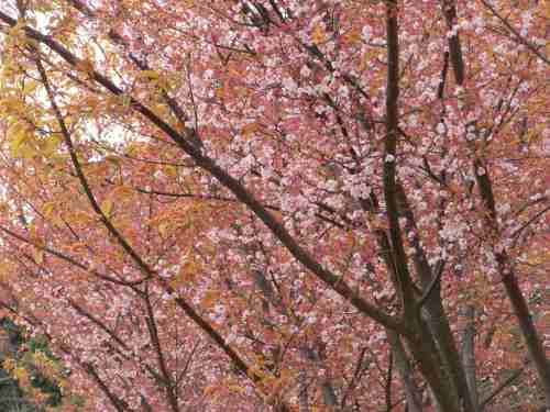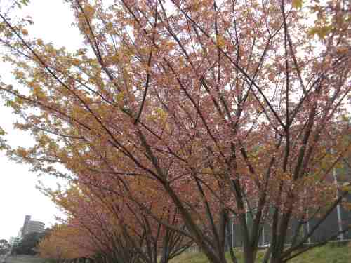 緋色から緑に移り変わる葉桜も綺麗です。ぜひともお楽しみください。