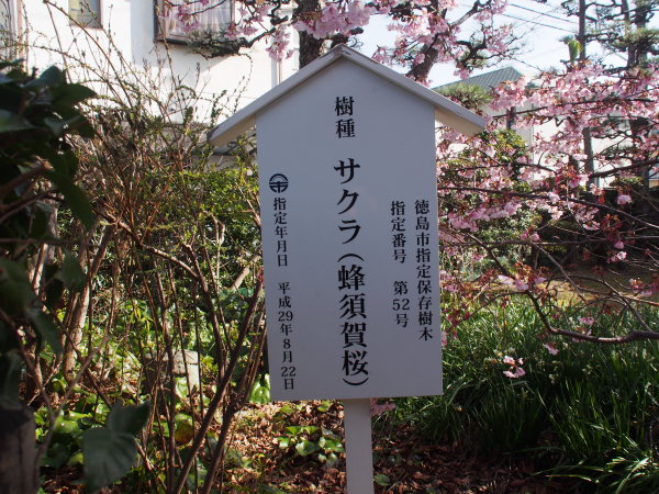 蜂須賀桜は、ヤマトザクラと沖縄系の桜の一代交雑種カンザクラの一種で、江戸時代まで徳島城御殿にあった。